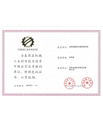 Third Science and Technology Award of the China Machinery Industry (Certificate)
